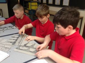 Kenwyn used charcoal to draw bridges and buildings